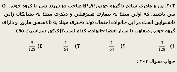 201. کدام گزینه عبارت زیر را به درستی تکمیل می کند؟(کنکور سراسری 95)